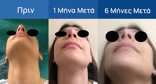 Βοηθά εξαιρετικά στη νεανική εμφάνιση του θεραπευόμενου. Μέσα από μικροσκοπικές τομές 0. 5 cm στη μέση της πτυχής του δέρματος στο πηγούνι και άλλων δυο πίσω από το λοβίο των αυτιών από οπού γίνεται η διήθηση με tumescent διάλυμα τοπικού αναισθητικού και ακολουθεί λιποαναρρόφηση της περιοχής.
