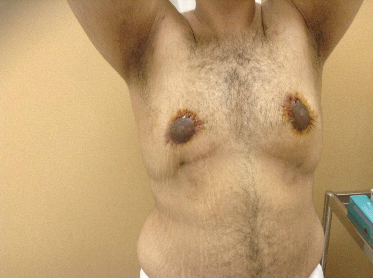 Step three – Final reconstruction takes place 6 months after step two. Under local anaesthesia and using multiple techniques we create a nipple and areola similar and symmetric to the healthy breast.