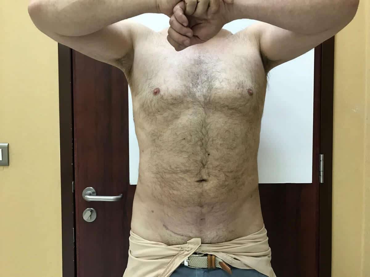 Depending on the case, we execute either liposuction or subcutaneous mastectomy ( just from a periareolar incision because scars are obvious on the thoracic wall of men) or a combination of these two methods.