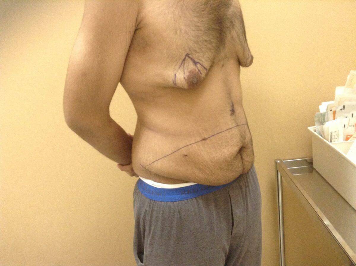 On the trunk, incisions are created horizontally on the upper end of the gluteous area until they join the abdominoplasty incision- full trunk lift.
