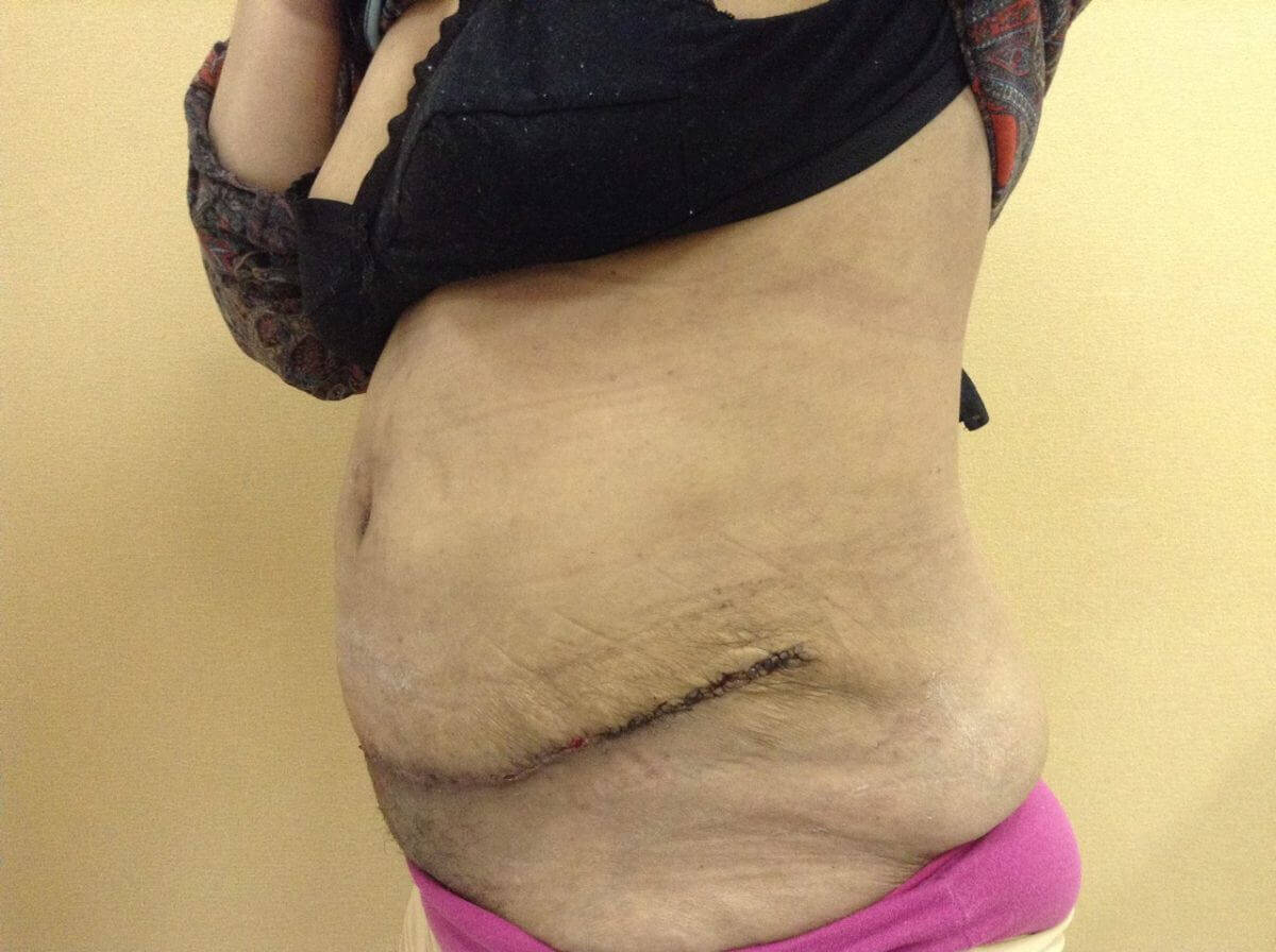 It is dermolipectomy of the excess lax skin and fat of the lower abdominal wall beyond the umbilicus (hanging abdomen) undermining and pulling down of the upper abdomen flap (over the umbilicus) and direct suture to the skin on the pubic area – cesarian incision site.