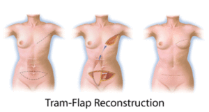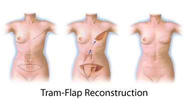 We can also reconstruct the breast using autologous tissue of skin and muscule flaps: latissimus dorsi and rectus abdominis –tram flap or free flaps as free tram or gluteus muscle flap with each technique having advantages and disadvantages .