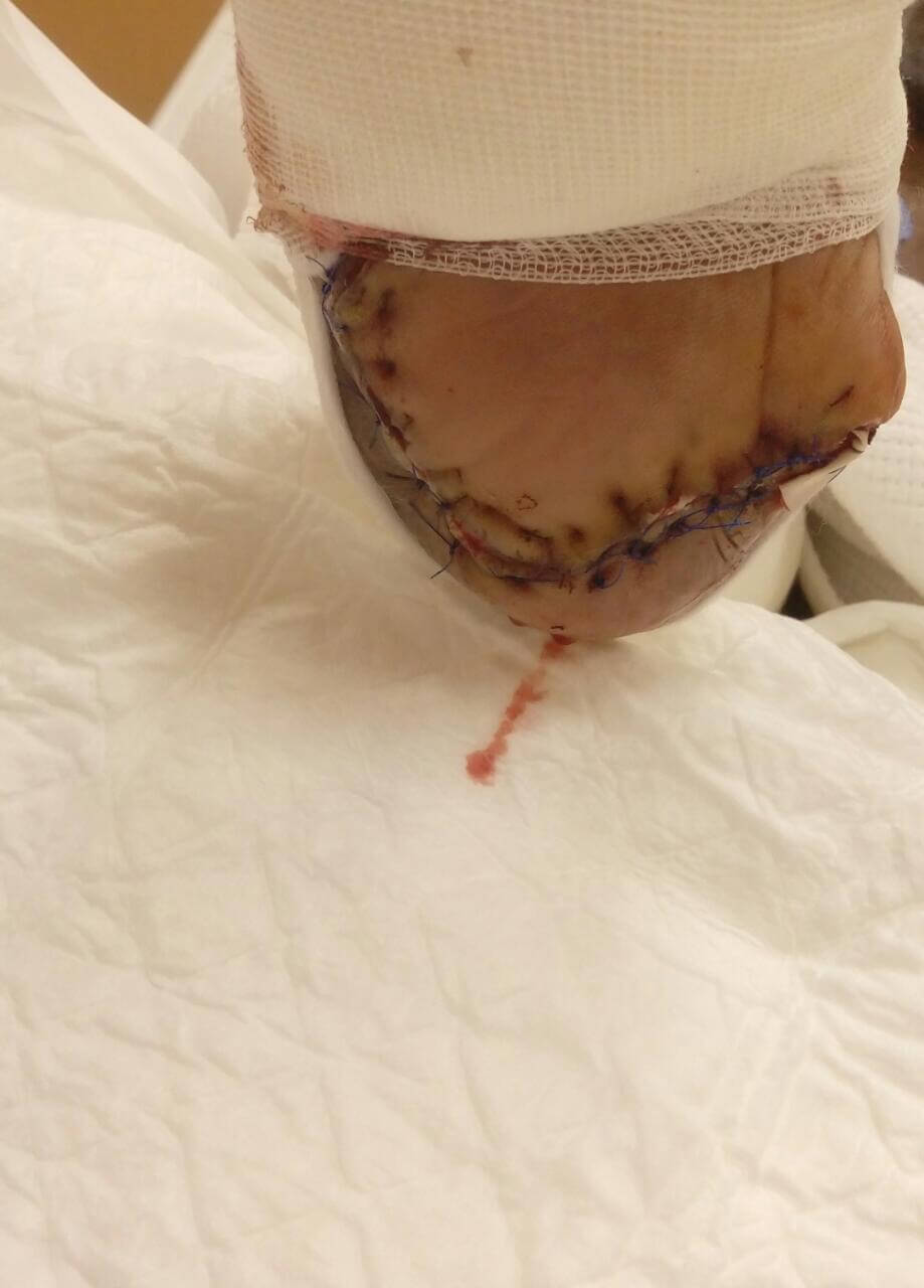 The excess skin is removed and the breast is stabilized with internal sutures as well as external suturing of the skin pocket, that covers the breast and the fat tissue.